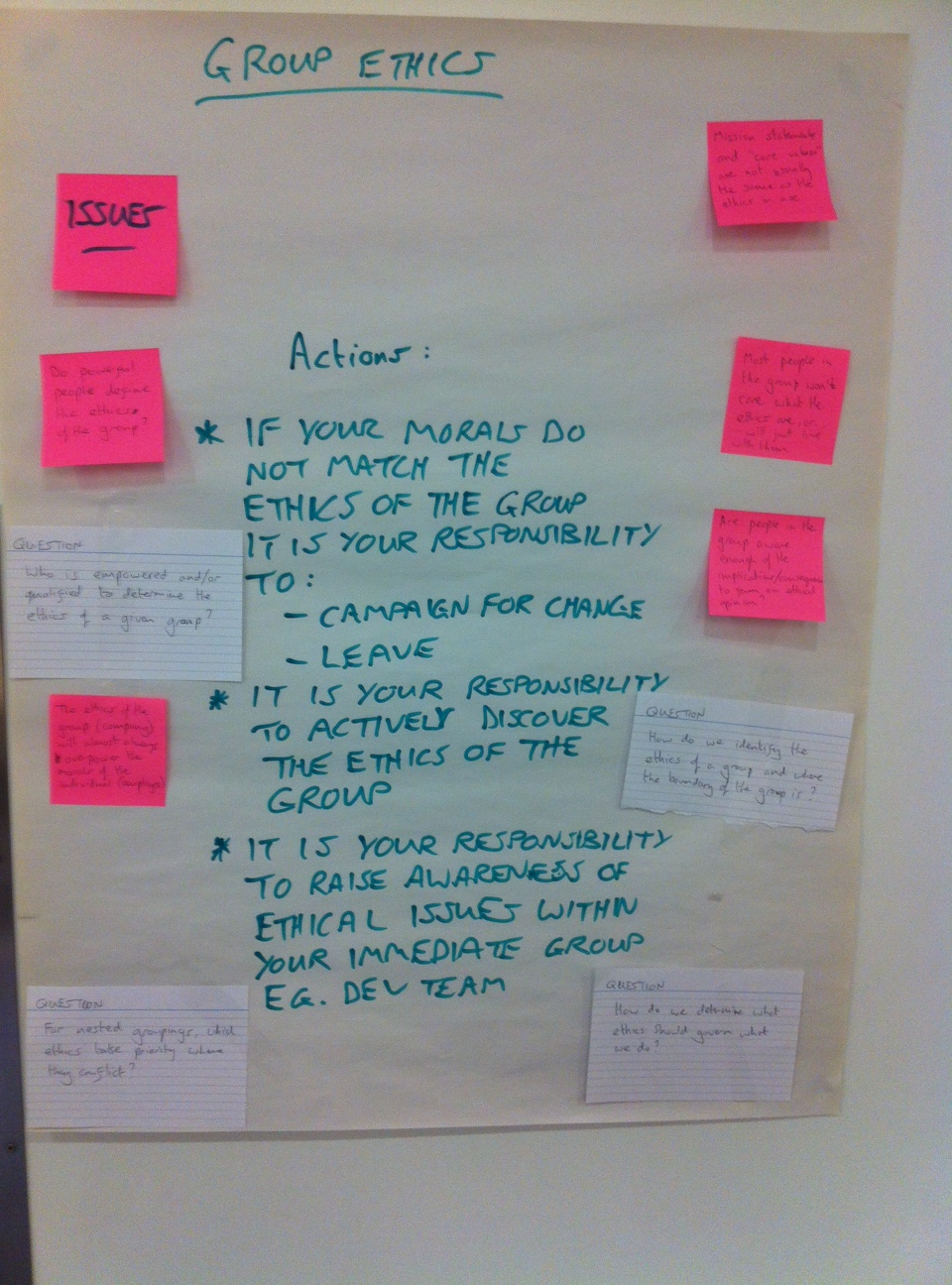 - If your morals do not match the ethics of the group then it is your responsibility to either campaign for a change to the group ethics…or to leave the group.